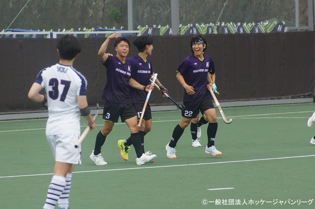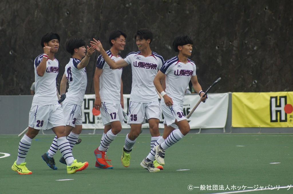 山梨学院のセンターパスより3Qが開始される。35分#7山堀がレフトからえぐり込み、プッシュシュートで右下段に決め、得点。37分山梨学院がPCを獲得。GKが弾いたボールを#38岩崎がダイレクトで決め得点。39分#36寺坂がイエローカードで5分間の退場。42分、アルカディア奈良がPCを獲得。メイン#3渡部がプッシュで、パッサーの#7小林に合わせタッチシュートを決め得点。44分#6山口がイエローカードで退場。山梨学院のセンターパスにより4Qが開始される。48分#4小野がイエローカードで退場。50分アルカディア奈良がPCを獲得。メインの#9田中から左の#3渡部にパスを出し、ドラッグで右下段に決め得点。52分山梨学院がPCを獲得。メインから、フリックシュートを打つもGKの好セーブにより得点とならない。55分山梨学院がPCを獲得。メインから#36寺坂がヒットシュートを左下段に決め、得点。56分アルカディア奈良がPCを獲得。メインから#3渡部がフリックシュートを打つも1番騎が止め、得点できない。59分#35篠原がプッシュシュートで決め、得点。5対6で山梨学院の勝利で試合が終了する。