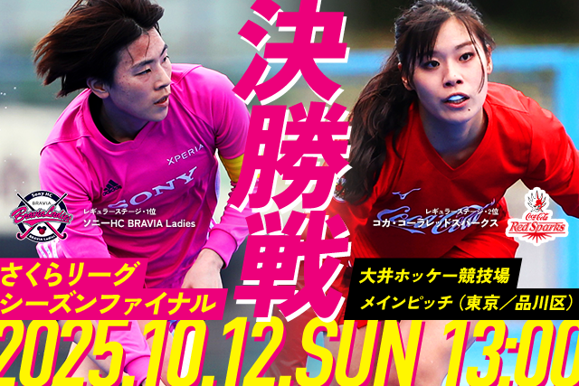 高円宮牌2025ホッケー日本リーグさくらリーグは7月6日にレギュラーステージが終了し、10月12日に大井ホッケー競技場メインピッチ(東京・品川区)で行われるシーズンファイナルの決勝戦へソニー HC BRAVIA Ladiesとコカ・コーラレッドスパークスが進むこととなった。