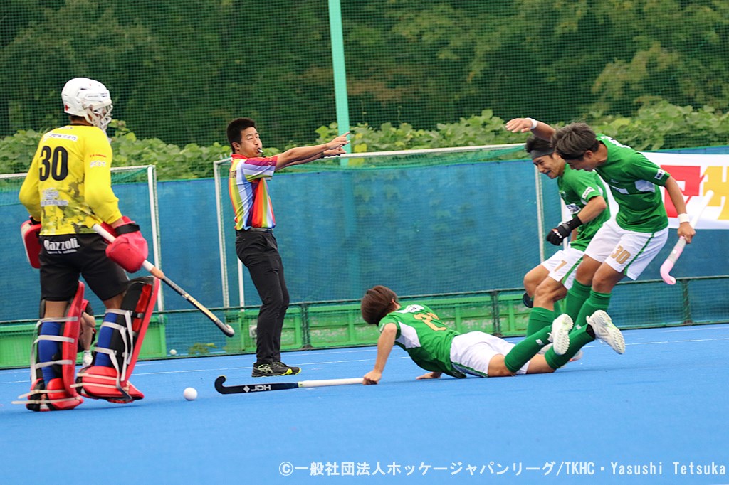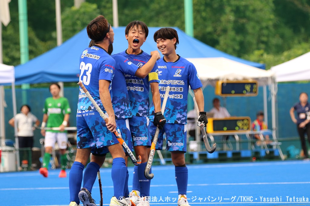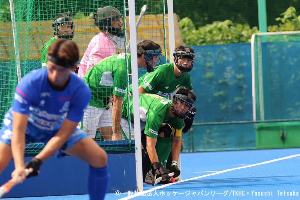 栃木のセンターパスにより試合が開始された。第1Q開始早々から互いにPCを獲得するが、両チームの守護神GKの岐阜#30吉川、栃木#27森田のナイスセーブにより得点を許さない。その後もお互いにPC獲得でチャンスを得るが、得点に至らない。拮抗した時間が続く中、第1Q終了間際の15分、岐阜はPCを獲得すると#6山中の強烈なフリックシュートで先制点をあげる。第2Q開始早々から互いにレベルの高いプレーで攻め込むも、得点には至らない。30分、岐阜は右サイドからサークル内に侵入しPCを獲得するが、栃木のDF陣が死守する。1-0と岐阜のリードで前半を折り返す。