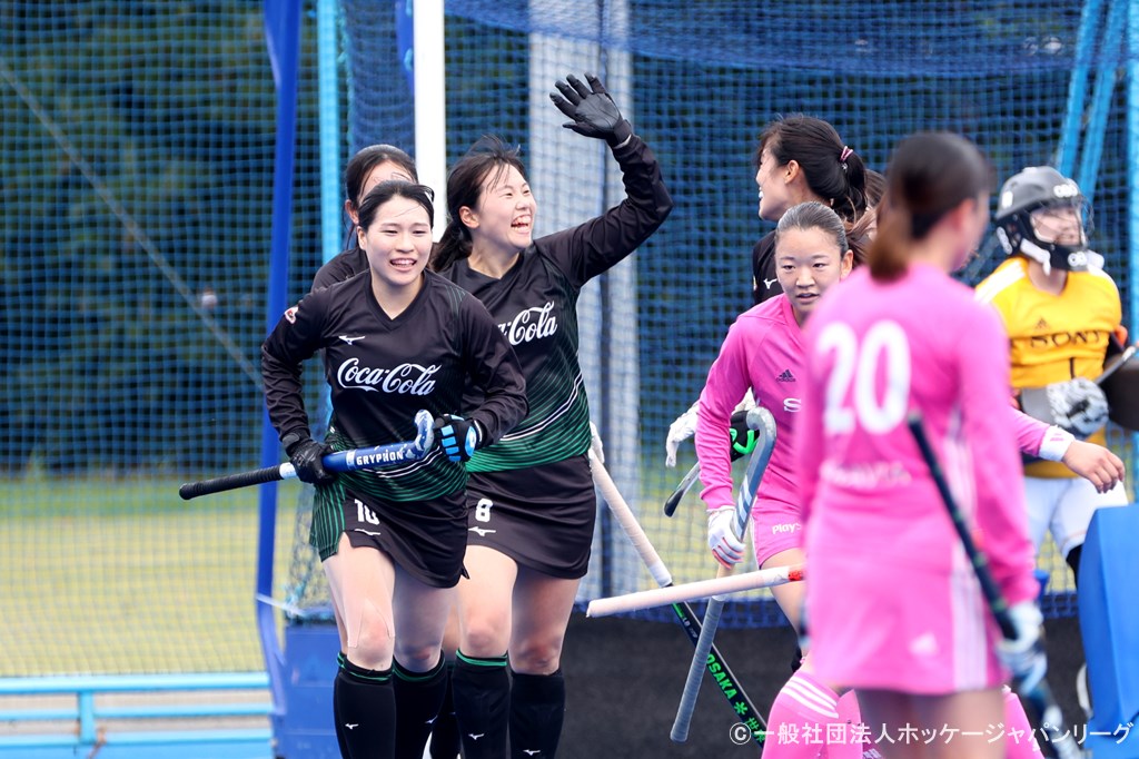 第3Qもコカ・コーラが主導権を握る。開始直後、#10中込がサークル内でリバースシュートを放つも、GKに阻まれる。34分には中込の突破からPCを獲得。ソニーがビデオリファーラルを要求したが、別のファウルが認められ、判定は変わらなかった。直後にソニーもカウンターからPCを得るが、こちらも得点にはつながらない。40分にはコカ・コーラ#19松本がタッチシュートを決め、リードを2点に広げる。その後も攻勢を続けたが、追加点のチャンスは枠を捉えきれず、第3Qは2-0で終了。迎えた第4Q、ソニーが反撃に出るも、コカ・コーラの堅い守備に阻まれる。49分、50分、53分と立て続けにコカ・コーラがシュートチャンスを迎えるが、いずれもGK青木の好セーブに阻まれる。55分にはソニーが連続でPCを獲得するも、GKとディフェンス陣の集中した守りにより得点を奪えず、そのまま試合終了。レギュラーステージ2位のコカ・コーラが、1位のソニーを2-0で下し、2年ぶり7度目の優勝を果たした。