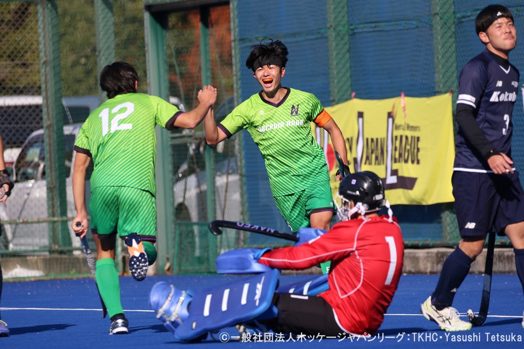 第1Q アルカディア奈良のセンターパスにより試合が開始される。 開始早々両チームの激しい攻防が続く中、7分アルカディア奈良がPCを取得する。#29和田のフリックシュートがゴールの右下に決まり先制点とする。その後もアルカディア奈良がスピードを生かして攻め込んで行く。対するALDERも得点を狙うが、ゴールには繋がらない。12分アルカディア奈良がカウンターからの速い攻撃を仕掛ける、#6中嶋が左側からセンターリングをアシストし#12川上がこれに合わせ2−0で第1Qを終える。第2Q アルカディア奈良の攻撃の時間が続き、またもPCを取得する。#3渡部がフリックシュートを狙うもALDER飯能の堅い守備に阻まれる。アルカディア奈良の攻撃が続く中、ALDER飯能の#11北里のスクープから#2花澤に繋げサークルインするが得点にはならない。その後もALDER飯能がヒットシュートを狙うが中々ゴールに繋がらない。13分ARDER飯能#5藤島がPCを取得する。#11北里のスイープシュートがゴールの右下へ決まり1−2で第2Qを折り返す。